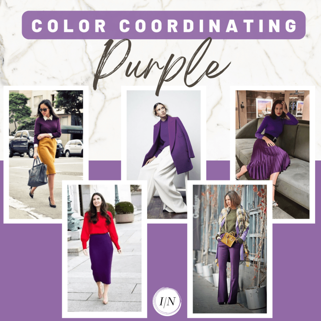 2️⃣ Wear purple with neutrals such as camel, navy, or white.